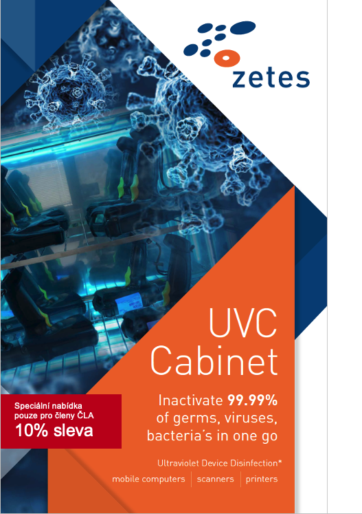 Jednou z cest je chránit pracovníky před (jakoukoli) virovou a bakteriální nákazou prostřednictvím účinné deaktivace virů, bakterií a jiných mikroorganizmů na mobilních RF terminálech, smartphonech, PDA, mobilních i průmyslových tiskárnách nebo skenerech čárových kódů, které používají pracovníci v klíčových skladových, maloobchodních i výrobních procesech. Zcela unikátním zařízením tohoto typu je Zetes UVC Cabinet – profesionální zařízení využívající ultrafialové germicidní ozařování (UVGI), jež nabízí účinnost dezinfekce na úrovni 99,99 % při cyklu 25 vteřin*. Tím umožňuje spolehlivě dezinfikovat 180 zařízení typu PDA za 30 minut, tj. mezi dvěma směnami nebo o polední pauze. Tuto skutečnost dokládá aktuální laboratorní výzkum Boston University. Ten prokázal, že dávka 5mJ/cm2 spolehlivě eliminuje v pouhých šesti vteřinách 99 % SARS-CoV-2, viru způsobujícího onemocnění COVID-19.